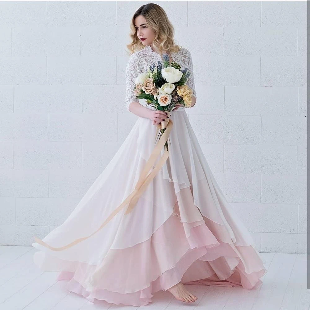 Hochzeit Kleid Erroten Rosa 2021 Fur Petite Frauen Chiffon Brautkleid Strand V Ausschnitt Einfachen Halben Hulse Nach Mass Bodenlangen Brautkleider Aliexpress